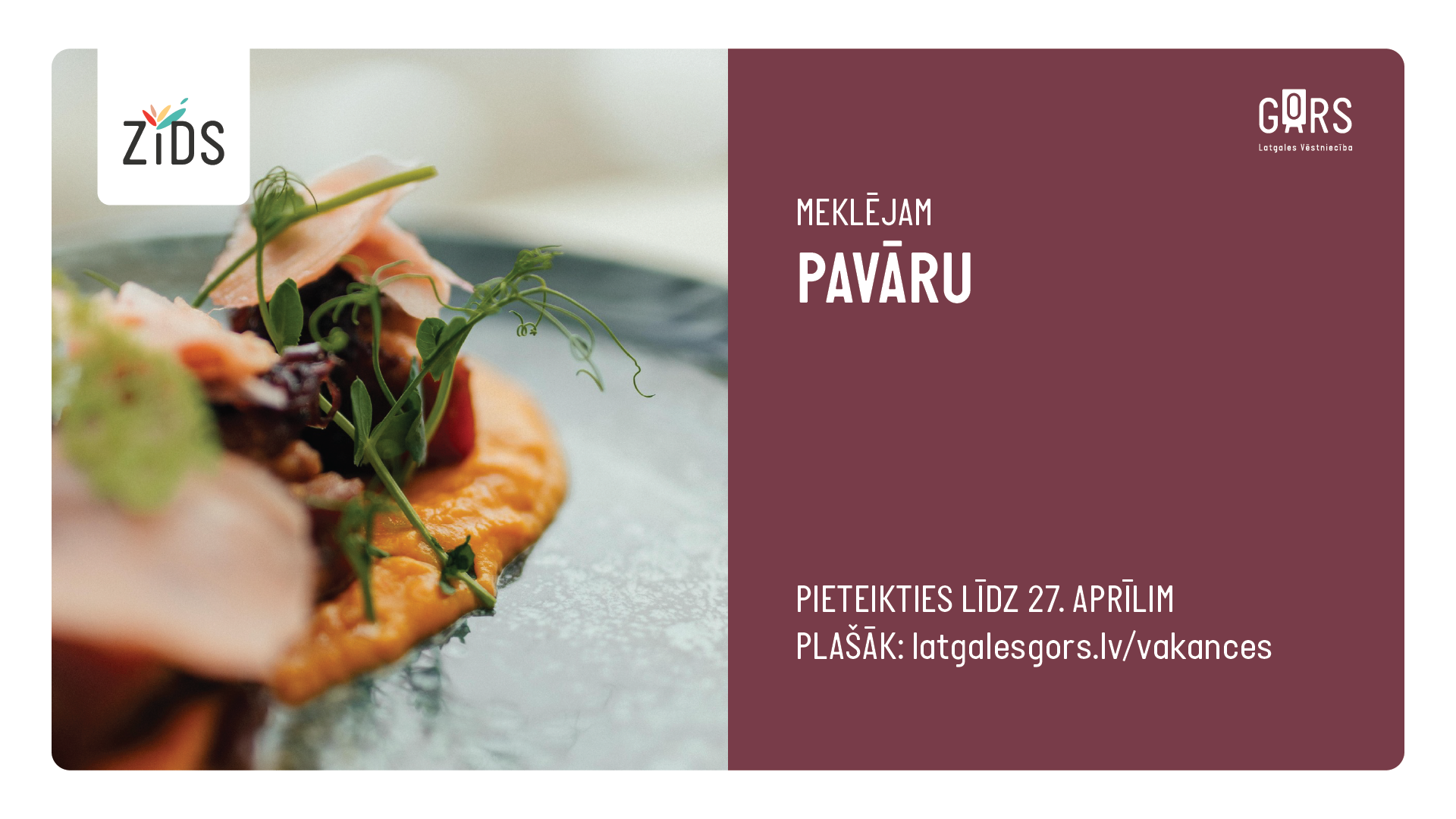 Restorāns ZĪDS Latgales vēstniecībā GORS aicina pievienoties savai komandai darbam motivētu un atbildīgu